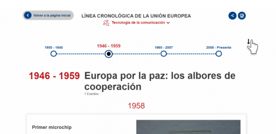 ¡Te damos la bienvenida a la línea cronológica de la Unión Europea! Aquí puedes informarte sobre cómo navegar por períodos o categorías, cómo insertar tu propio acontecimiento en los períodos de tiempo e, incluso, cómo compartir e imprimir tus artículos favoritos.